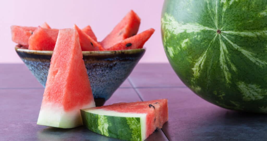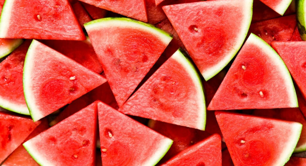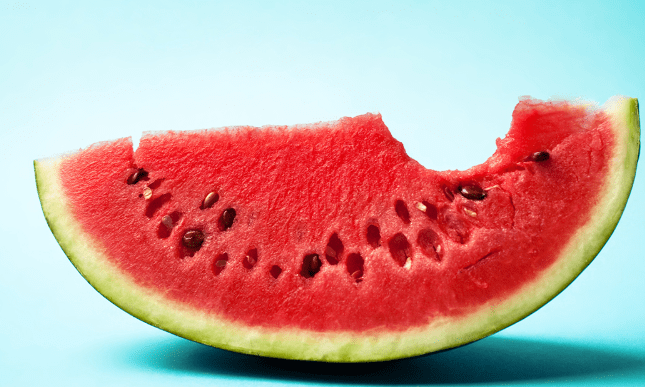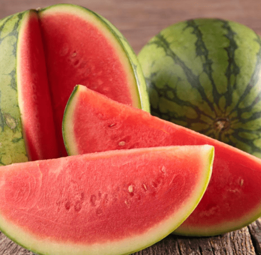 수박은 90% 이상의 물 즉 수분으로 달성되어져 있으며 열량이 100g당 30 kal 정도로 칼로리가 낮으며 식이 섬유가 많다고 해서 적은 양을 삼켜도 포만감을 주며, 각가지 비타민, 무기질 성분이 들어있어 체중 감량에 도와줍니다.